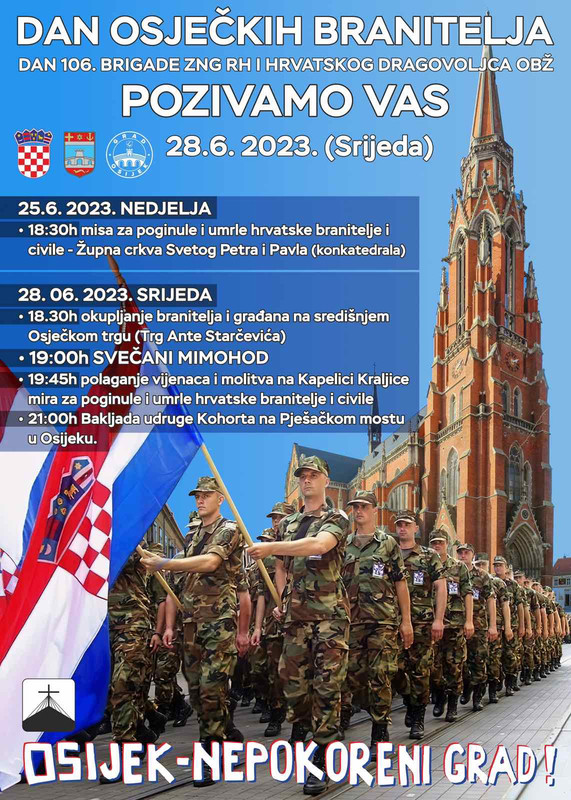 DAN OSJEČKIH BRANITELJA Objavljeno 26. lipnja 2023. autor admin PROTOKOL ZA DAN OSJEČKIH BRANITELJA – 28.06.2023