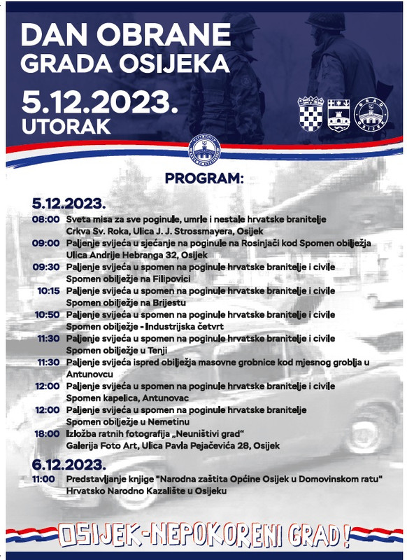 5 prosinca 1991. jedan je od najtežih i najtužnijih dana datuma u povijesti Osijeka. Tog dana u herojskoj obrani grada poginulo je 28 pripadnika Osječke 106-brigade.Poginuli branitelji na Rosinjači su: Salko Ahmić, Ivica Babaja, Pavao Begonja, Stjepan Ezer, Damir Farago, Berislav Genčić, Zoran Gnjatović, Ivan Hap, Zoran Kišasondi, Siniša Knežević, Mladen Milanković, Davor Milas, Matija Olujić, Ivan Sekanić, Goran Stjepanović i Mihajlo Pelegrin.